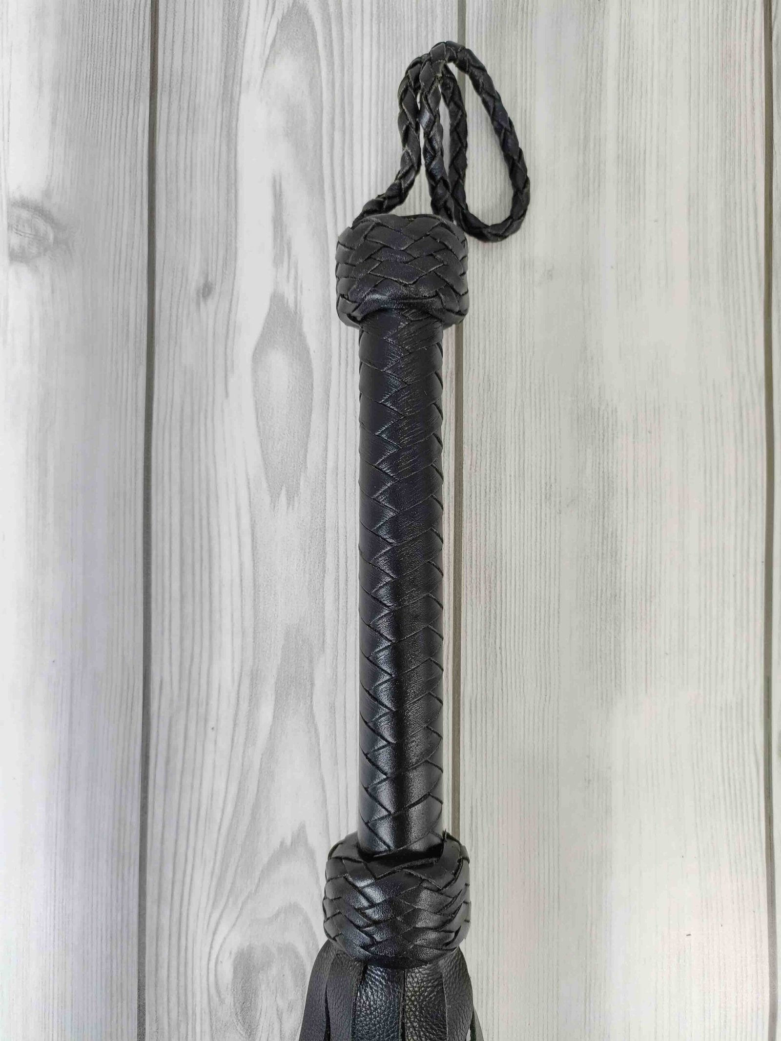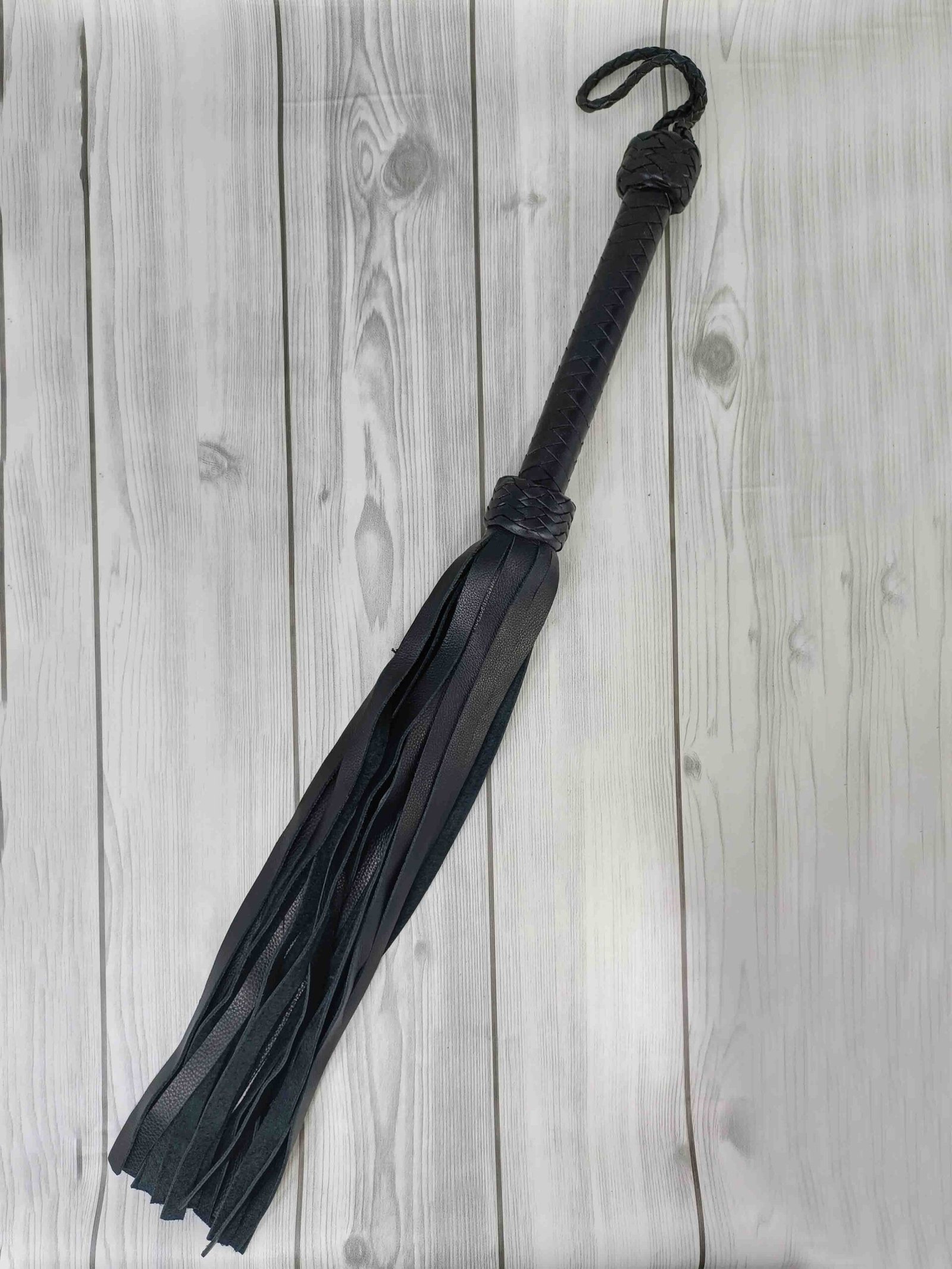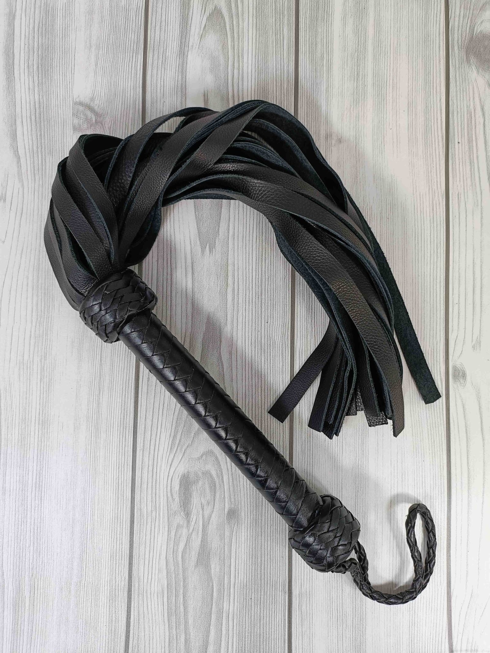 The leather BDSM flogger combines exquisite craftsmanship with durability and functionality. Crafted from premium cowhide leather, the flogger features a sleek, polished finish that enhances its sophisticated and commanding presence. Its sturdy, ergonomically designed handle provides a secure grip, ensuring precise control during use. The multiple supple leather tails deliver a versatile range of sensations, from gentle teasing to more intense impact, catering to various levels of experience and preference. Reinforced stitching along the handle adds durability, while the balanced weight distribution ensures ease of handling. This expertly crafted flogger blends style and practicality, making it an essential addition to any BDSM collection.