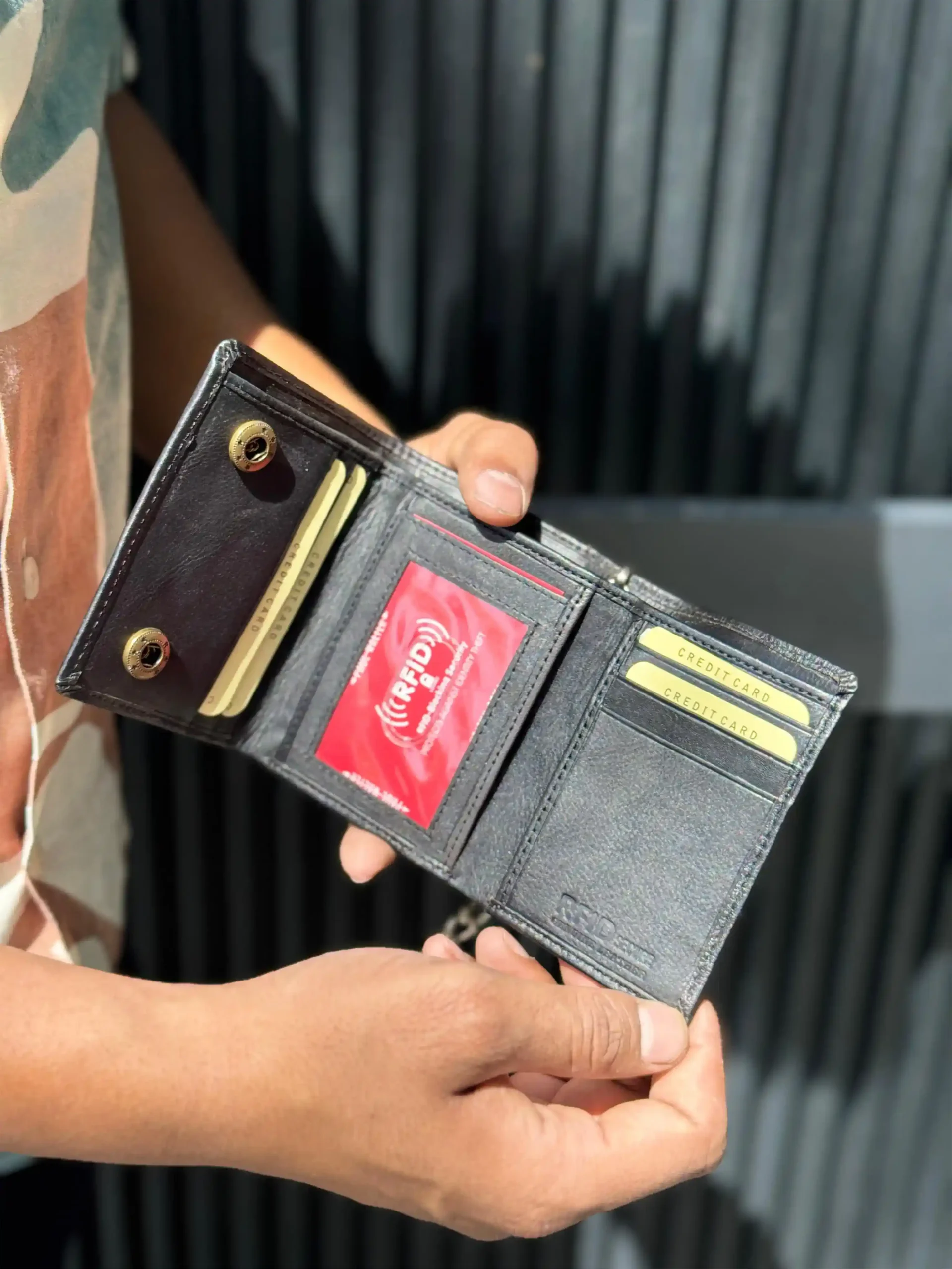 This Biker Chain Wallet is Made from Genuine Leather which is light in weight. The thread used for stitching is strong and also enhances the overall look of the wallet.